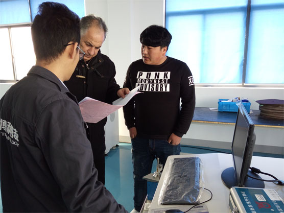 2016年4月該公司技術部負責人Mr. Mouaici Nassim來我公司參觀考察,他們所要測試的材料主要是鋼材和鋁材,杰博工程師小晉聽了Mr. Mouaici Nassim的闡述,當場為他們做出了設備方案,配置鐵基和鋁基2個基體,一共配置16個通道,并現場測試了他們帶來的樣品,Mr. Mouaici Nassim對樣品檢測的靈敏度和準確度表示非常滿意。